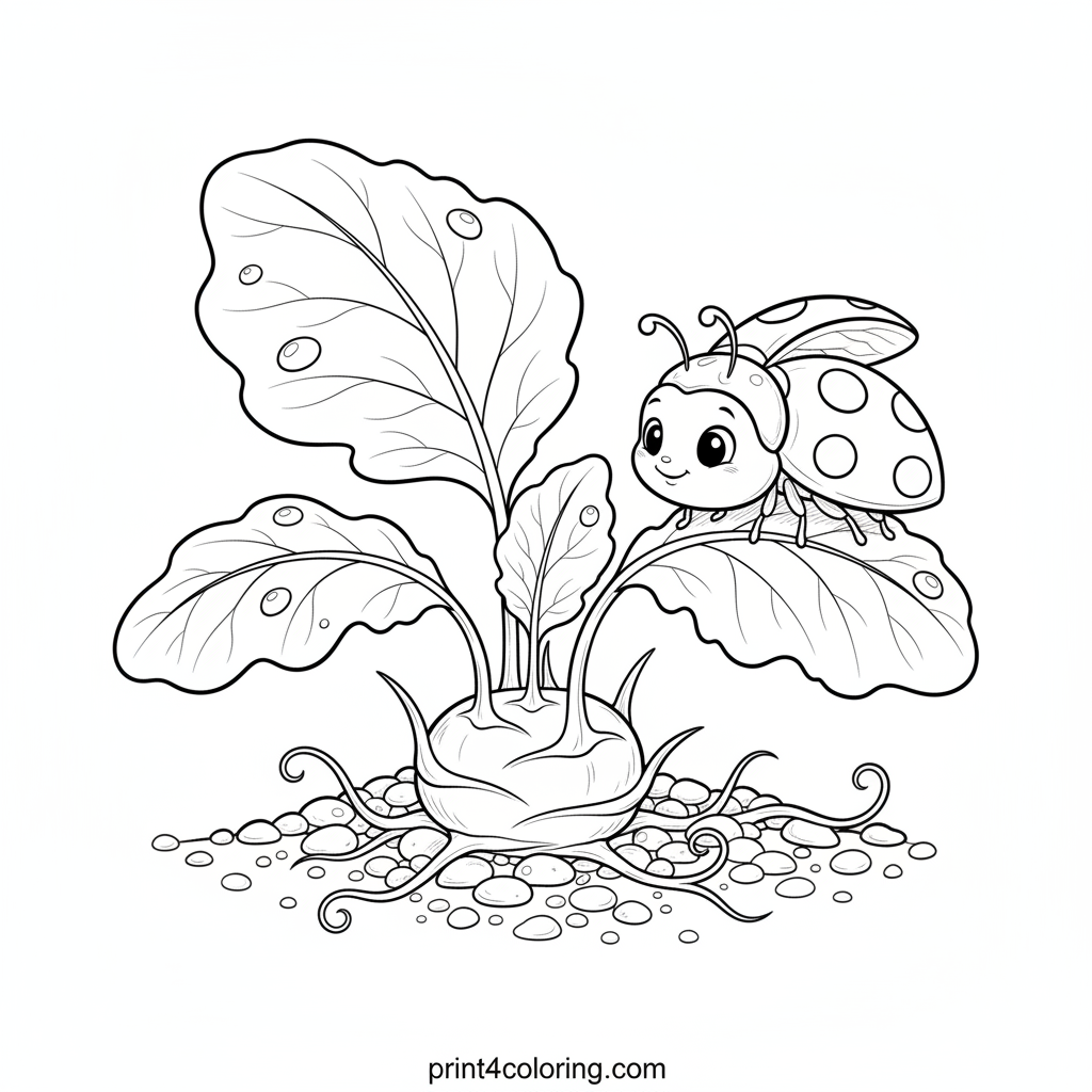 Kohlrabi Sprout's Dewdrop Awakening Coloring Page
