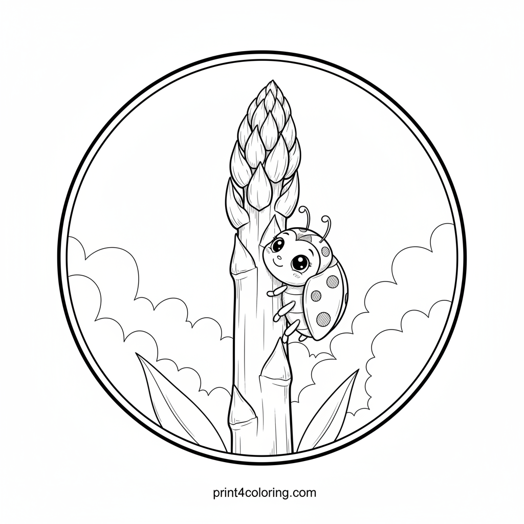 Embark on a tiny garden adventure! This detailed coloring page features a friendly ladybug carefully climbing a tender asparagus spear. With intricate textures on the stalk and realistic spots on the ladybug, this scene invites you to add vibrant colors to a cozy, softly blurred garden setting. Perfect for exploring nature's small wonders.