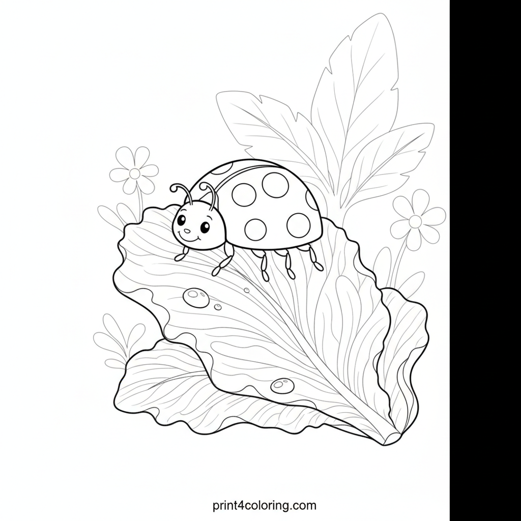 Join a charming ladybug as she explores a giant, dewy lettuce leaf, ready for a delicious meal! This detailed coloring page invites you to bring the vibrant world of garden tiny creatures to life. Focus on the delicate spots, intricate leaf veins, and sparkling water droplets for a realistic masterpiece. Perfect for nature lovers!