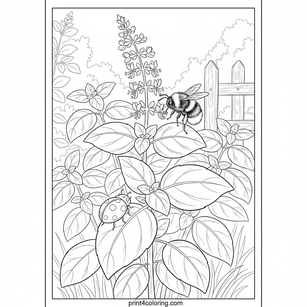 Nature's Tiny Helpers: Basil & Bees Coloring Page