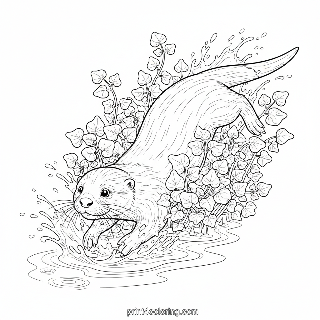 #otter#watercress#stream#playful#animal#nature#coloring-page#printable