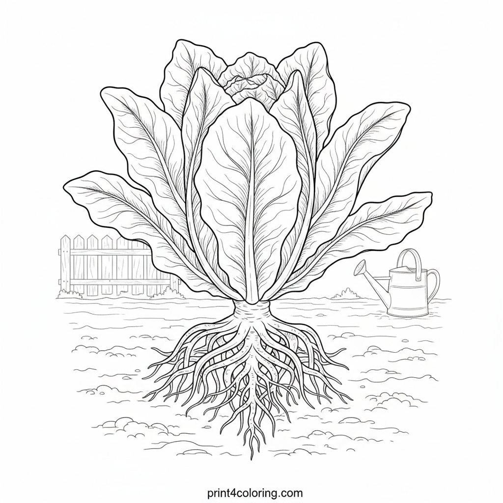 Romaine's Rooted Beauty: A Detailed Botanical Study Coloring Page