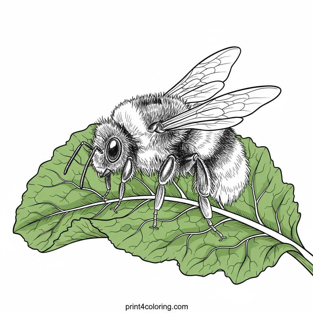 Explore a vibrant garden scene up close! This detailed coloring page features lush turnip plants with their textured leaves reaching for the sun. A fluffy bumblebee is gently landing, ready to gather pollen. A delightful challenge for expert colorists, capturing the beauty of nature's teamwork.