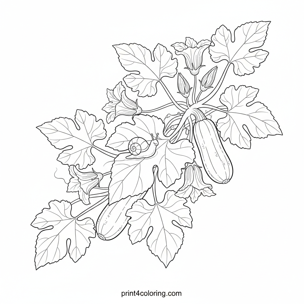#zucchini#garden#plant#snail#nature#flowers#vegetables#summer#botanical#coloring-page#printable