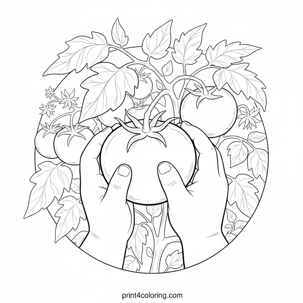 - 3✨ Gentle Hand Details - Color the child's hands with natural skin tones, paying attention to subtle shading to show the curve of the fingers and the delicate grip on the tomato stem.