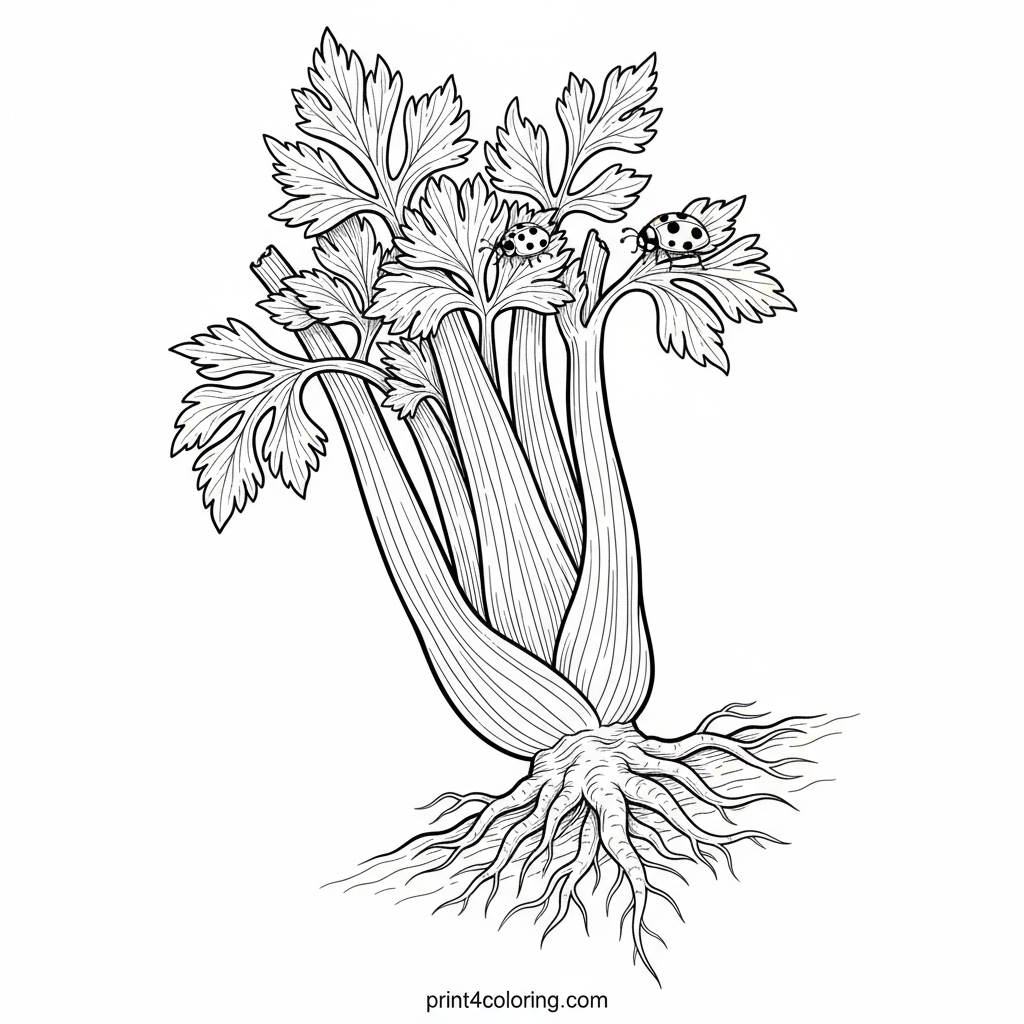 #celery#plant#botanical#roots#leaves#ladybug#garden#nature#coloring-page#printable