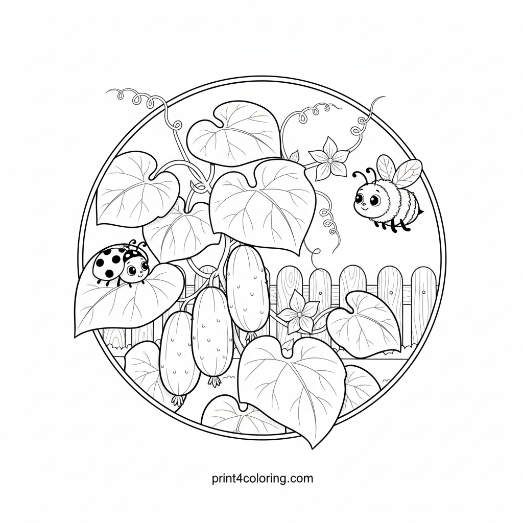 Vibrant Vine Life: A Cucumber Garden Scene Coloring Page