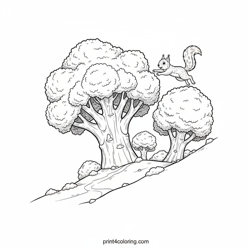 #broccoli#forest#squirrel#rabbit#adventure#whimsical#nature#coloring-page#printable