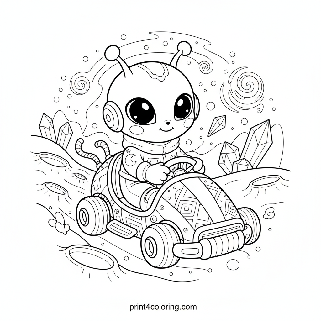 #alien#go-kart#moon#space#futuristic#adventure#crystals#nebulae#coloring-page#printable
