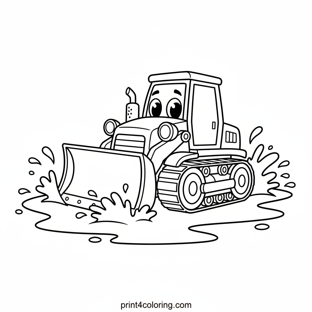 Bulldozer's Muddy Splash Party Coloring Page