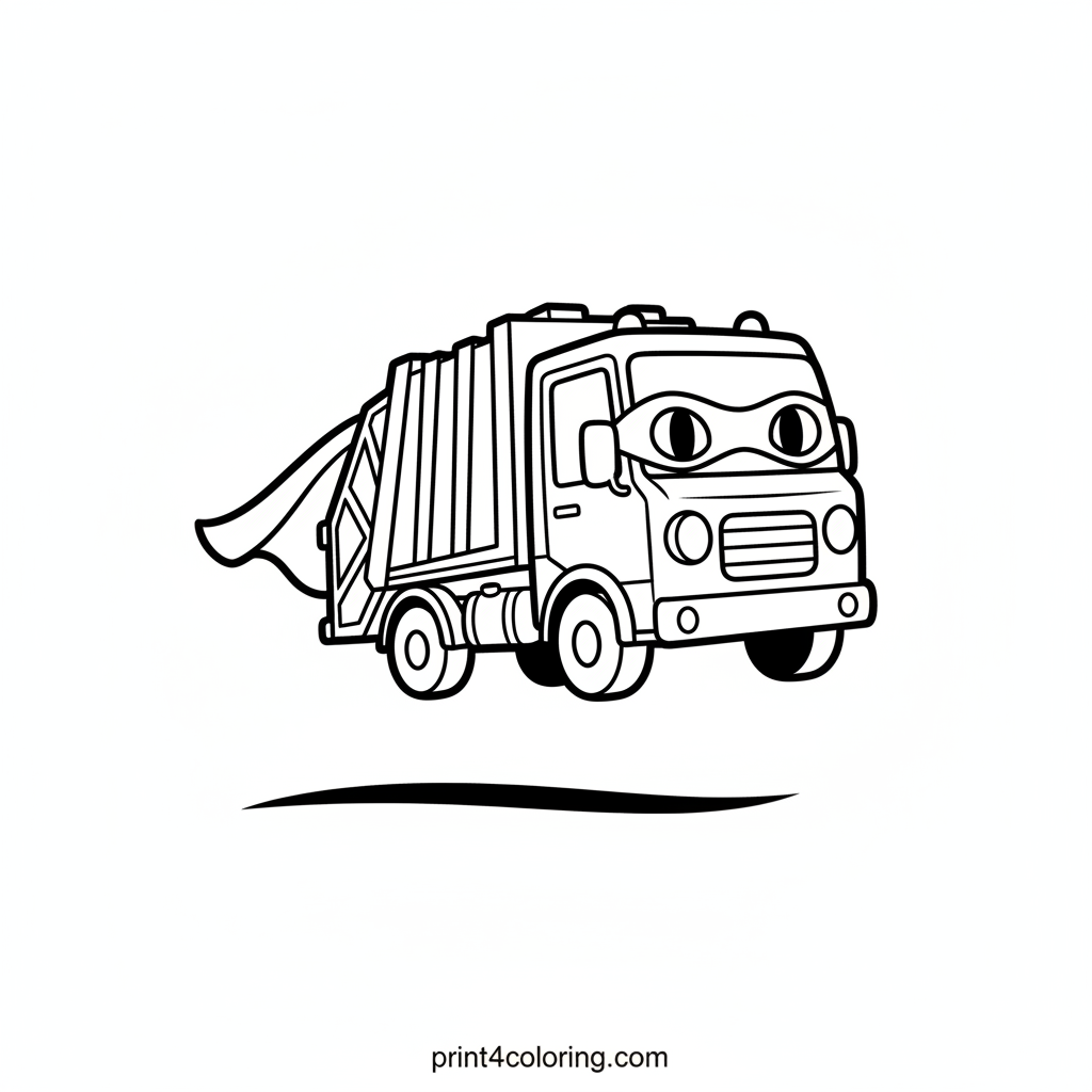 #garbage-truck#superhero#truck#flying#cape#mask#playful#vehicles#coloring-page#printable