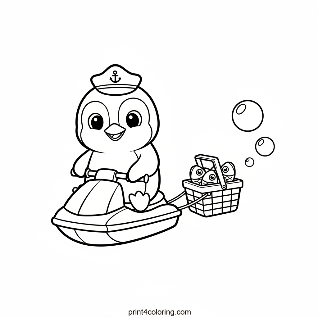 - 4🌈 Tiny Details - Give the captain's hat a special color, perhaps a deep blue or a vibrant red. Add extra sparkle to the bubbles and the trail behind the jet ski to show how fast Captain Penguin is going!