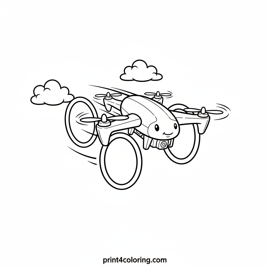 Get ready for an exciting aerial adventure! This coloring page features a super sleek drone zipping through a thrilling obstacle course. Watch its propellers whir as it navigates colorful hoops and fluffy clouds high in the sky. Imagine the speed and fun as it races to the finish line!