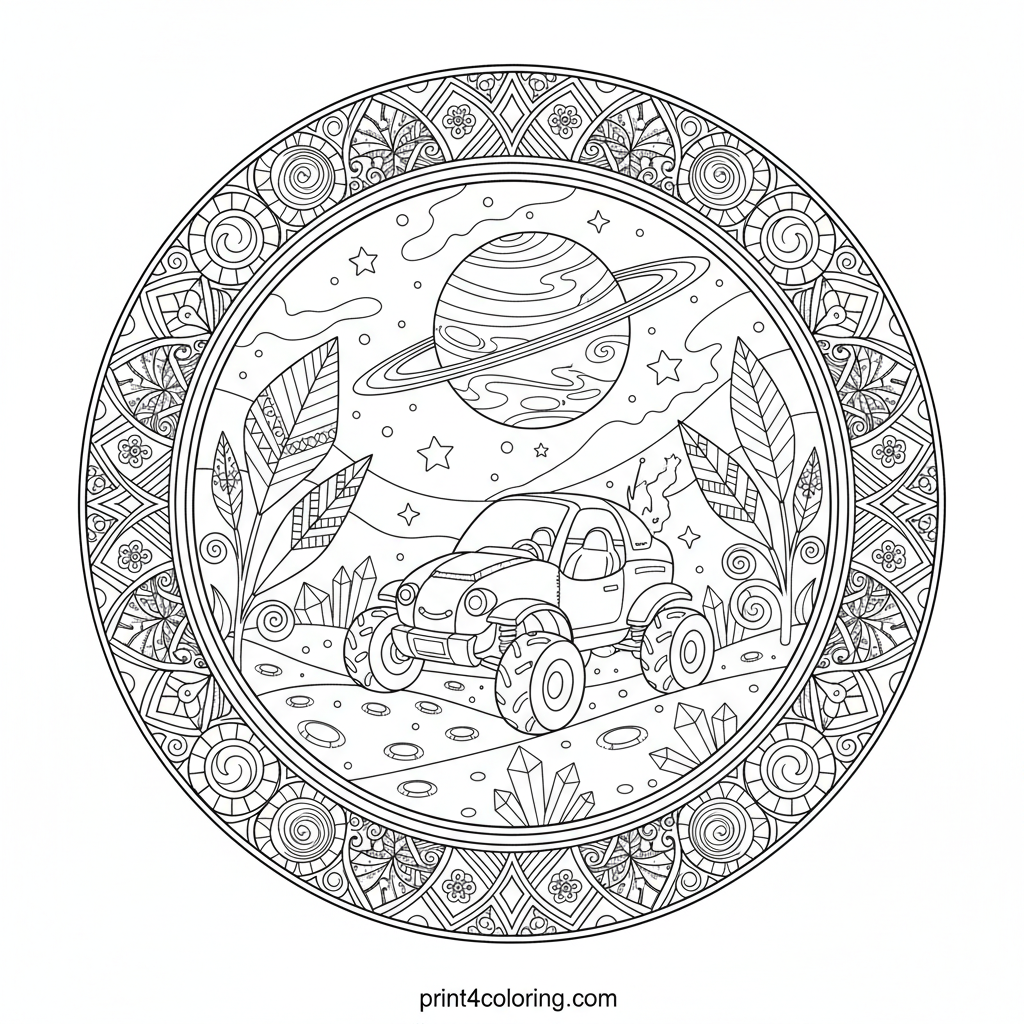 Cosmic Cruiser: Crystal Dunes Adventure Coloring Page