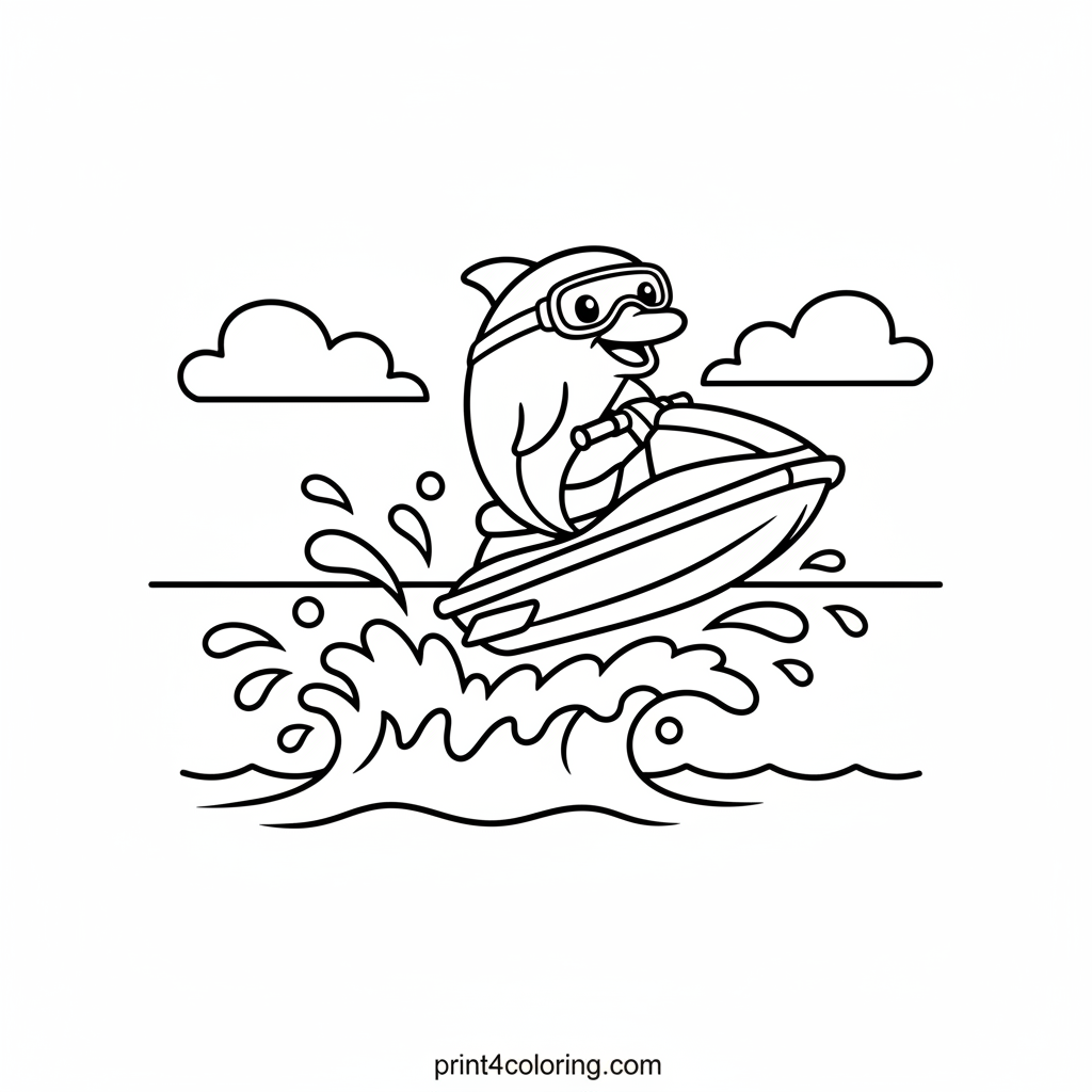 Dolphin's Awesome Jet Ski Splash Coloring Page