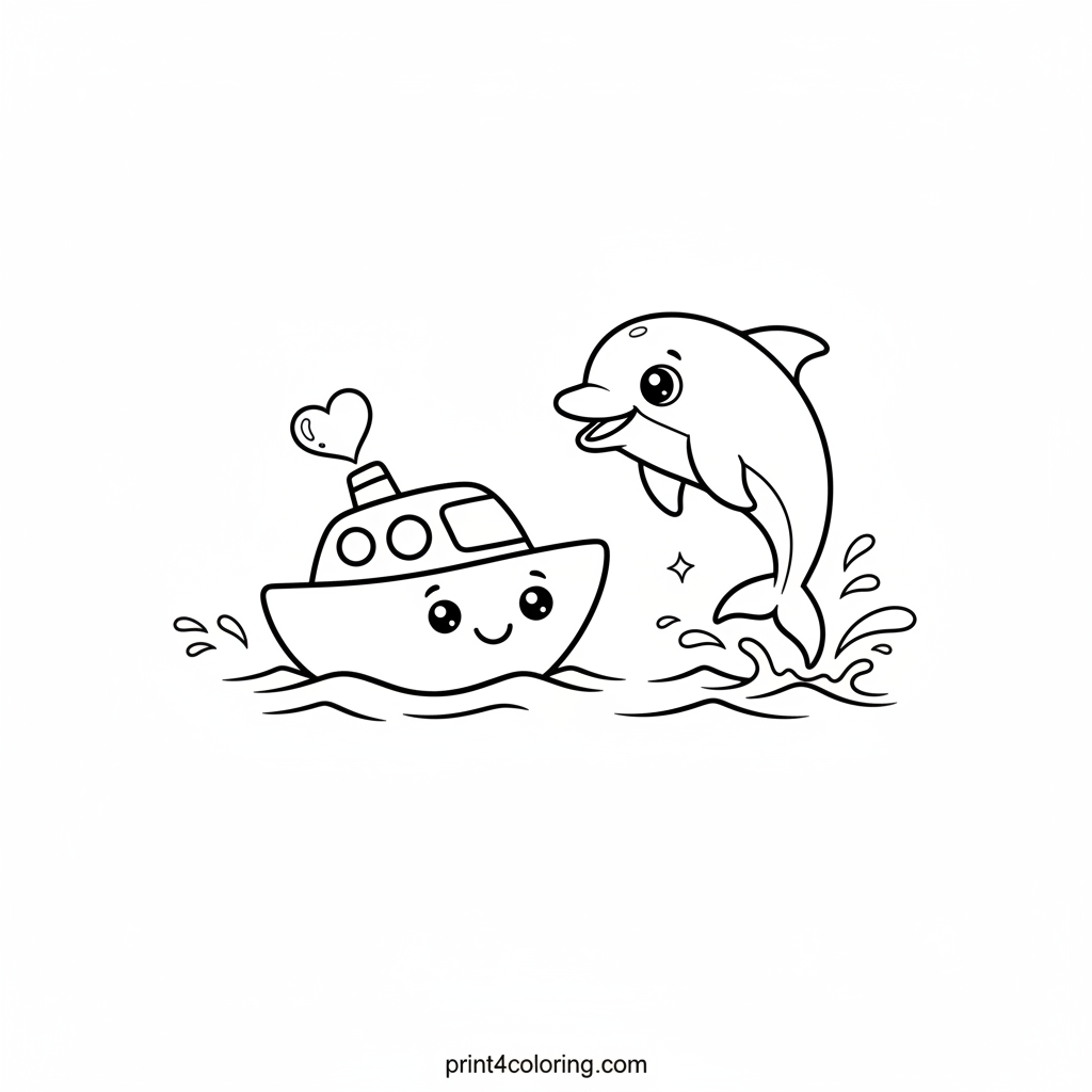 Join a delightful dolphin as it playfully races alongside a cute, simple yacht! Watch the gentle wake shimmer behind them in the sparkling ocean. This heartwarming scene captures the joy of friendship and the beauty of the sea, perfect for young artists to bring to life with their favorite colors.