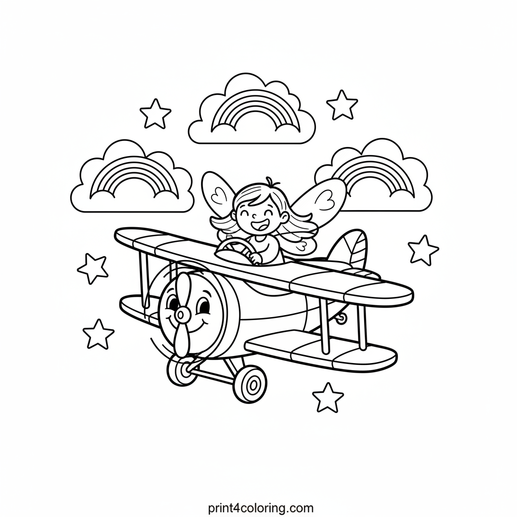 - 1🎨 Iridescent Wings - Use shimmery crayons, metallic pencils, or even a touch of glitter glue on the fairy's and biplane's wings to make them gleam with magical colors.