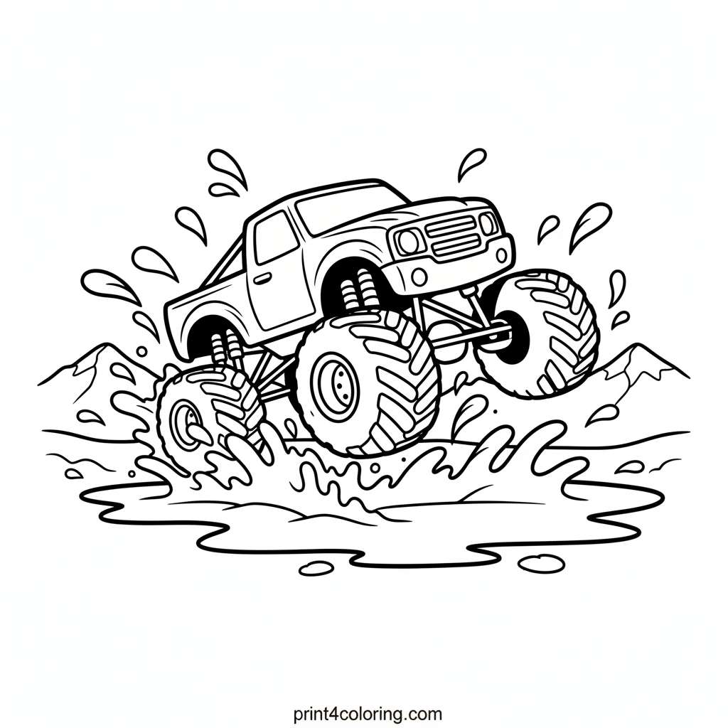 #monster-truck#truck#mud#splash#off-road#action#vehicles#coloring-page#printable