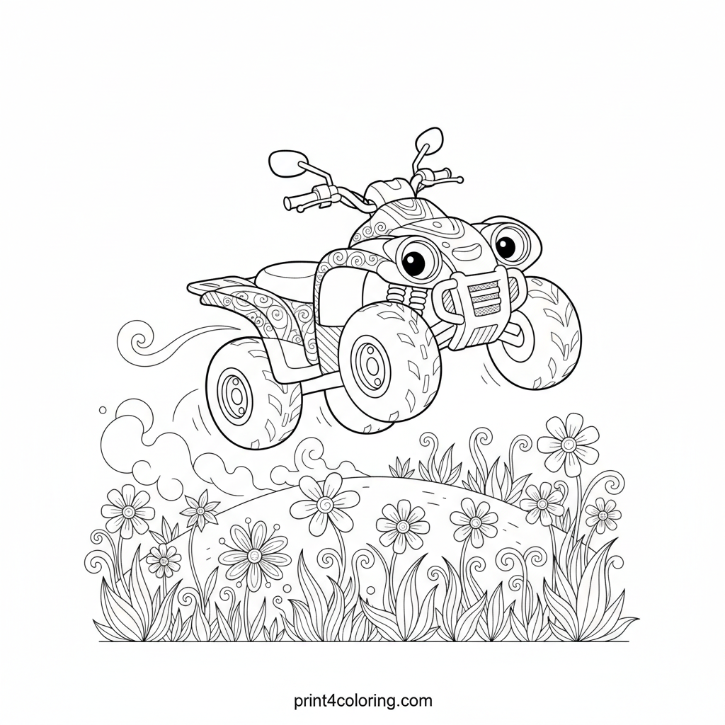 #quad-bike#explorer#friendly#flowers#nature#vehicles#adventure#field#detailed#coloring-page#printable