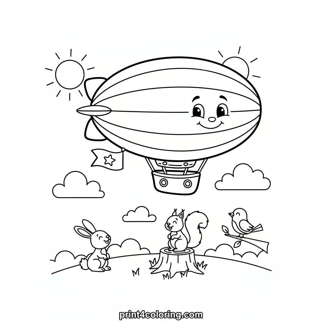 Happy Blimp's Sky Adventure Coloring Page