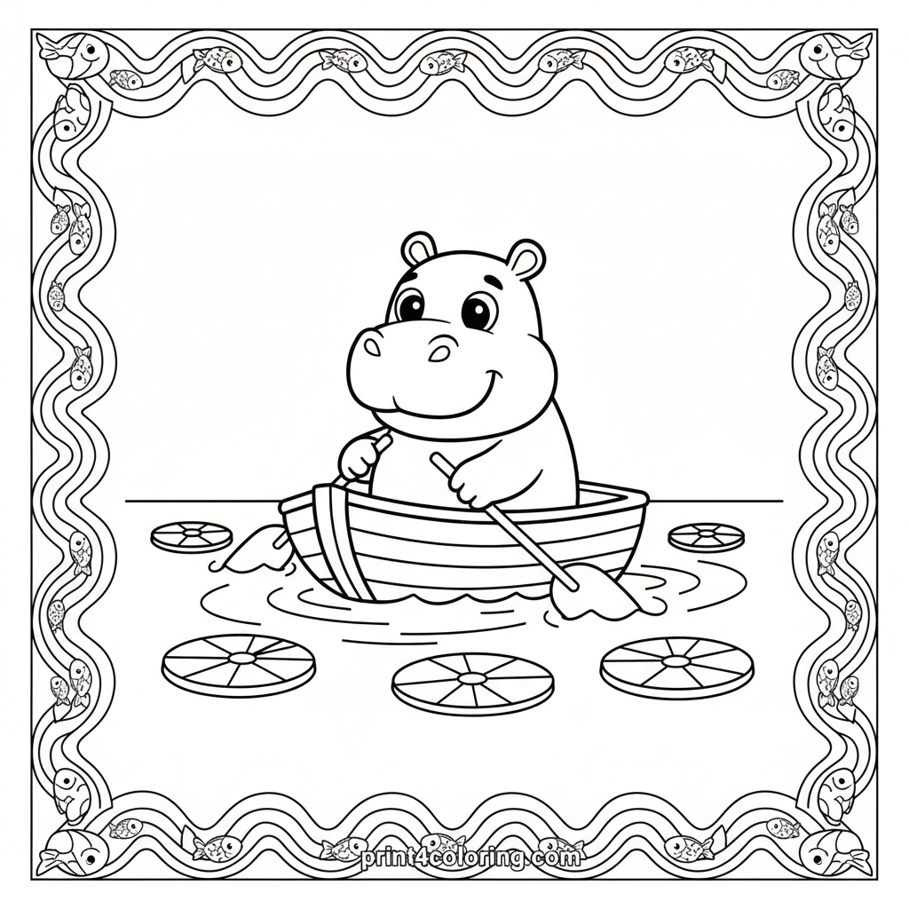Happy Hippo's Lakeside Adventure Coloring Page