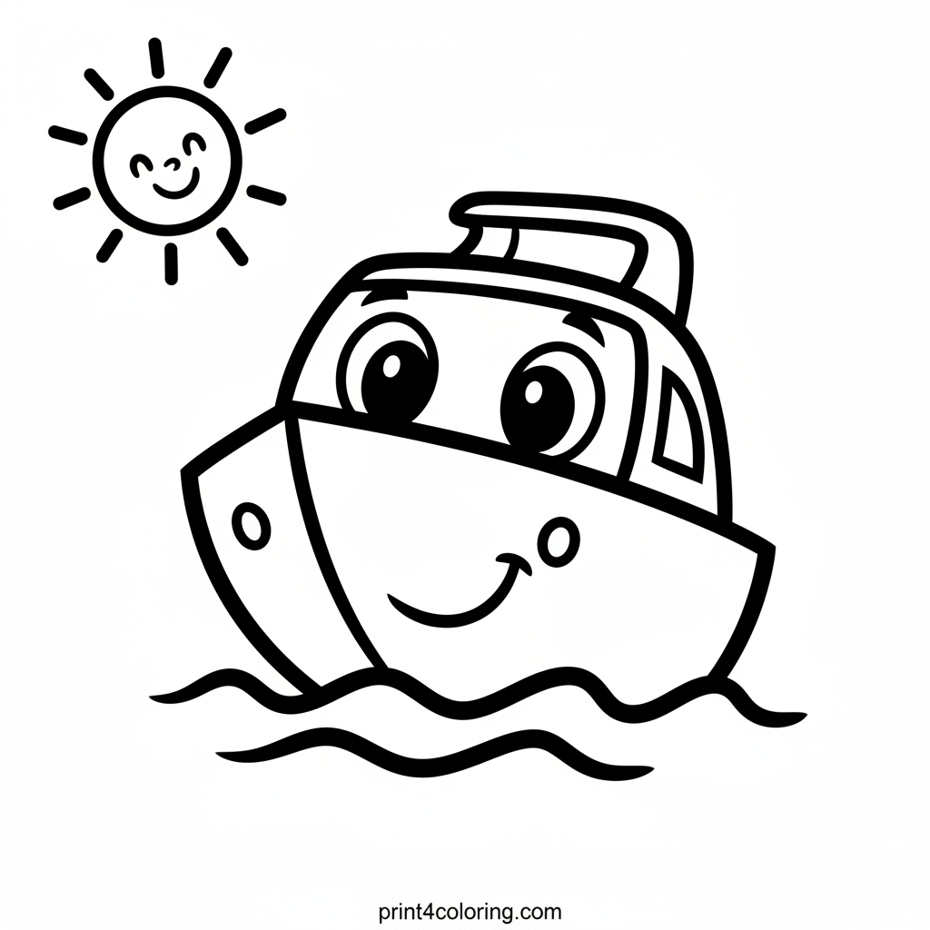 Set sail for a super fun adventure with this happy little yacht! With its big friendly eyes and a cheerful smile, this cute boat is gently bouncing on the wavy water under a bright, sunny sky. Grab your crayons and bring this joyful scene to life with your favorite colors. It's time for a happy voyage!