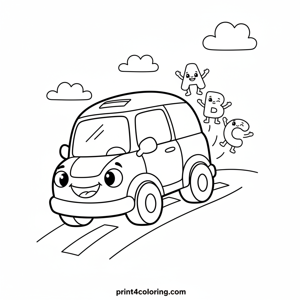 Join our cheerful mail van, with a big happy smile, as it zooms along a winding road! Watch the friendly letters playfully flutter behind, eager to reach their destinations. This speedy delivery adventure is ready for your colorful imagination. Grab your crayons and bring this exciting scene to life!