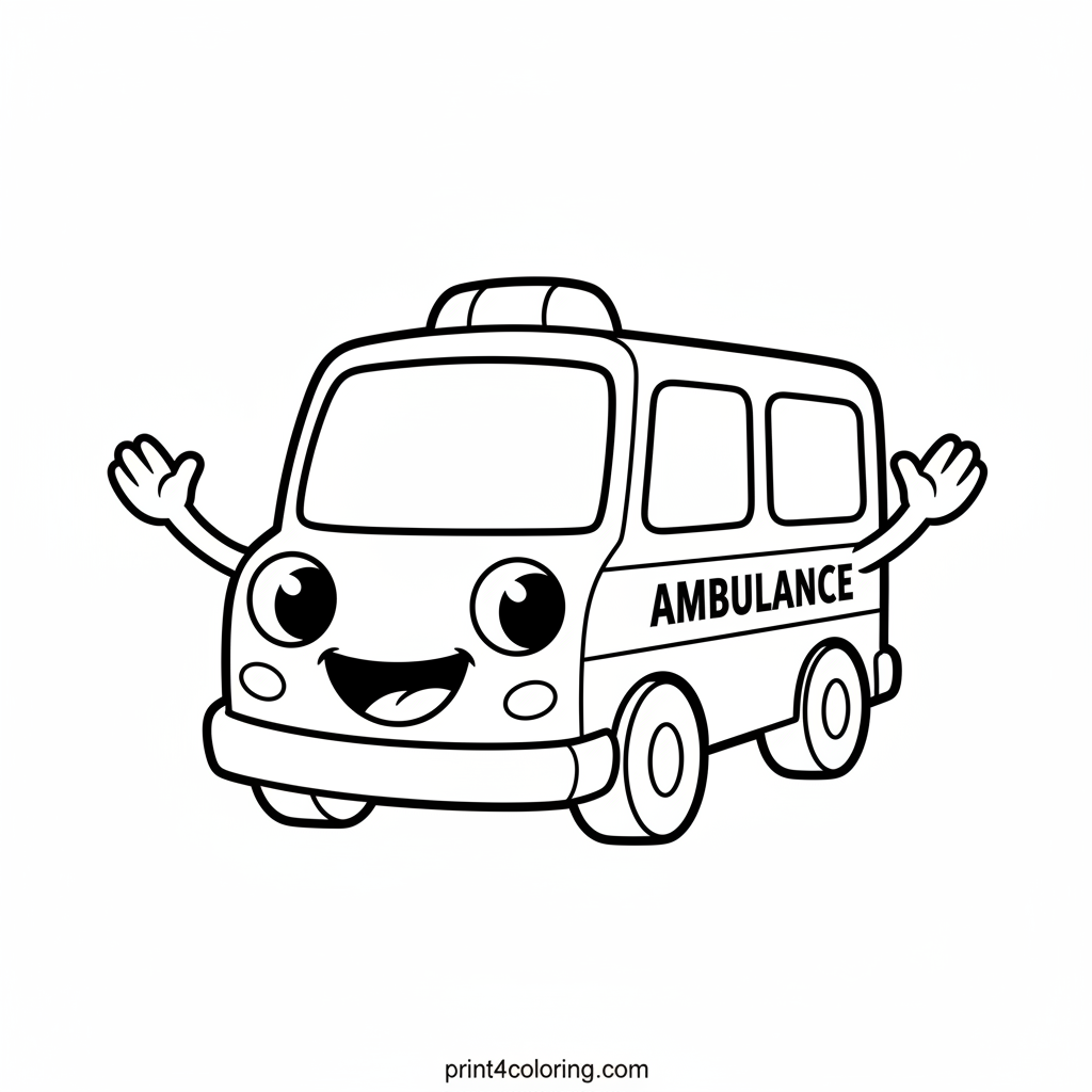 #ambulance#vehicle#emergency#helper#cute#waving#cartoon#transportation#coloring-page#printable