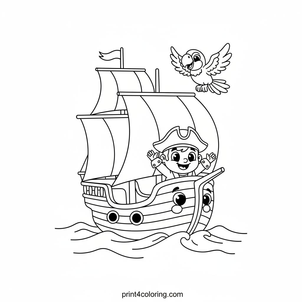 #pirate#ship#ocean#adventure#captain#parrot#sailing#cute#happy#coloring-page#printable