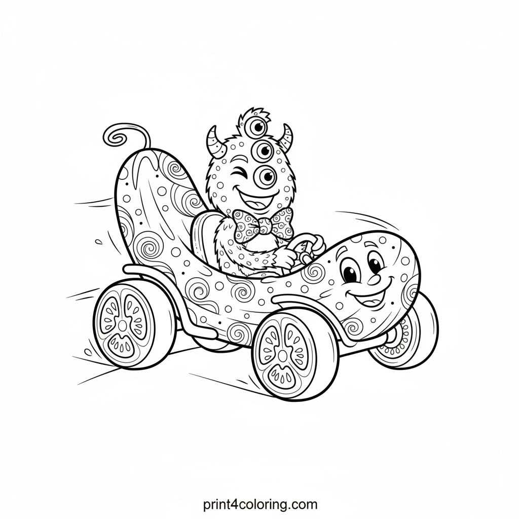 Monster's Zany Pickle Go-Kart Race! Coloring Page