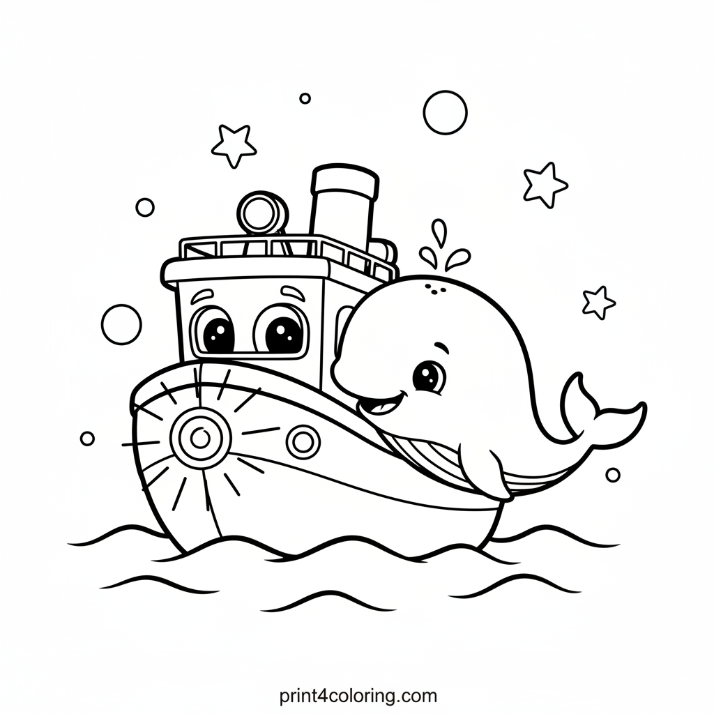 Embark on a heartwarming adventure! A brave little tugboat, its single light glowing softly, carefully guides a lost baby whale through gentle waves under a starry night sky. Bring this courageous rescue to life with your colors and help the baby whale find its way home.