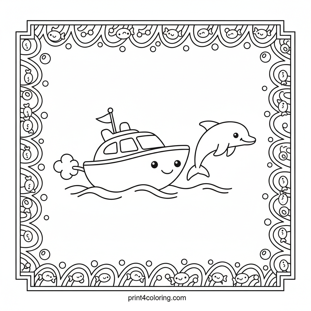 Dive into an ocean adventure with this delightful coloring page! A cute, simple yacht speeds across the water, accompanied by a friendly dolphin playfully leaping out of the waves. Imagine the cool ocean spray and the joy of this sea creature racing alongside the boat. Grab your crayons and bring this exciting marine scene to life!