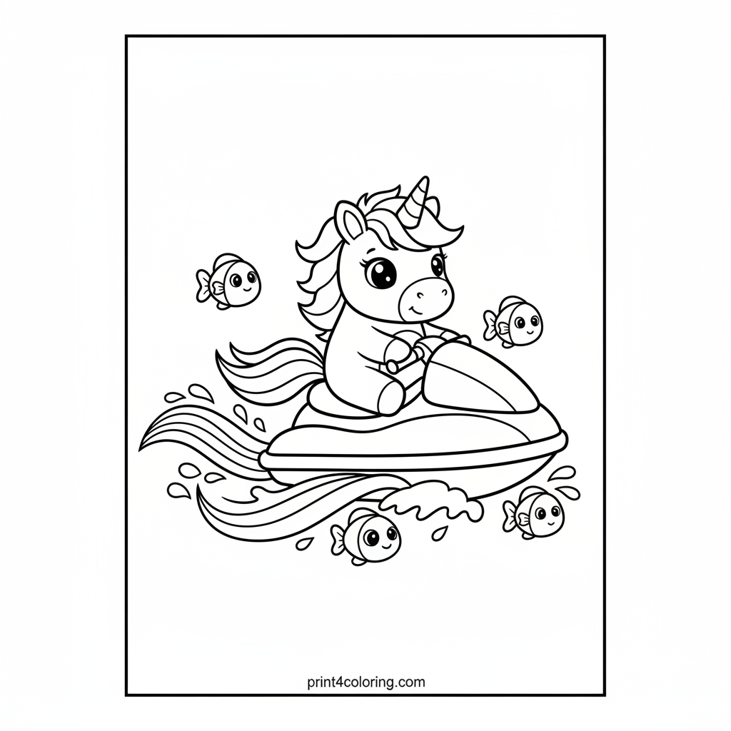 Rainbow Unicorn Jet Ski Adventure Coloring Page