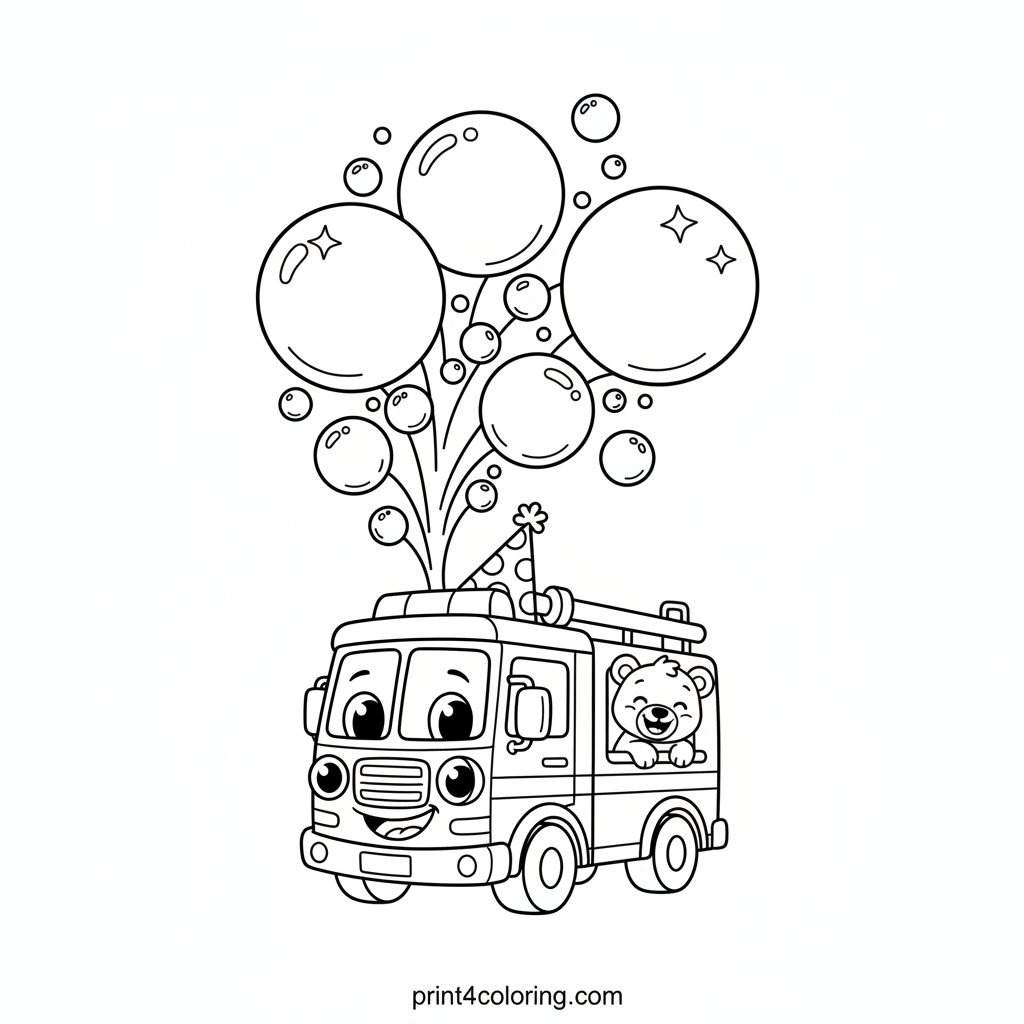 Silly Fire Truck Bubble Party Adventure Coloring Page