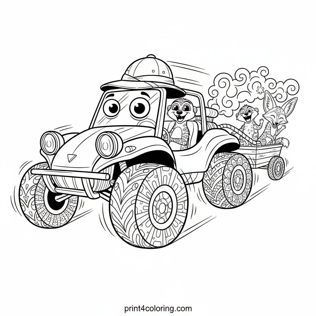 The Silly Safari Buggy's Giggle-Powered Adventure Coloring Page