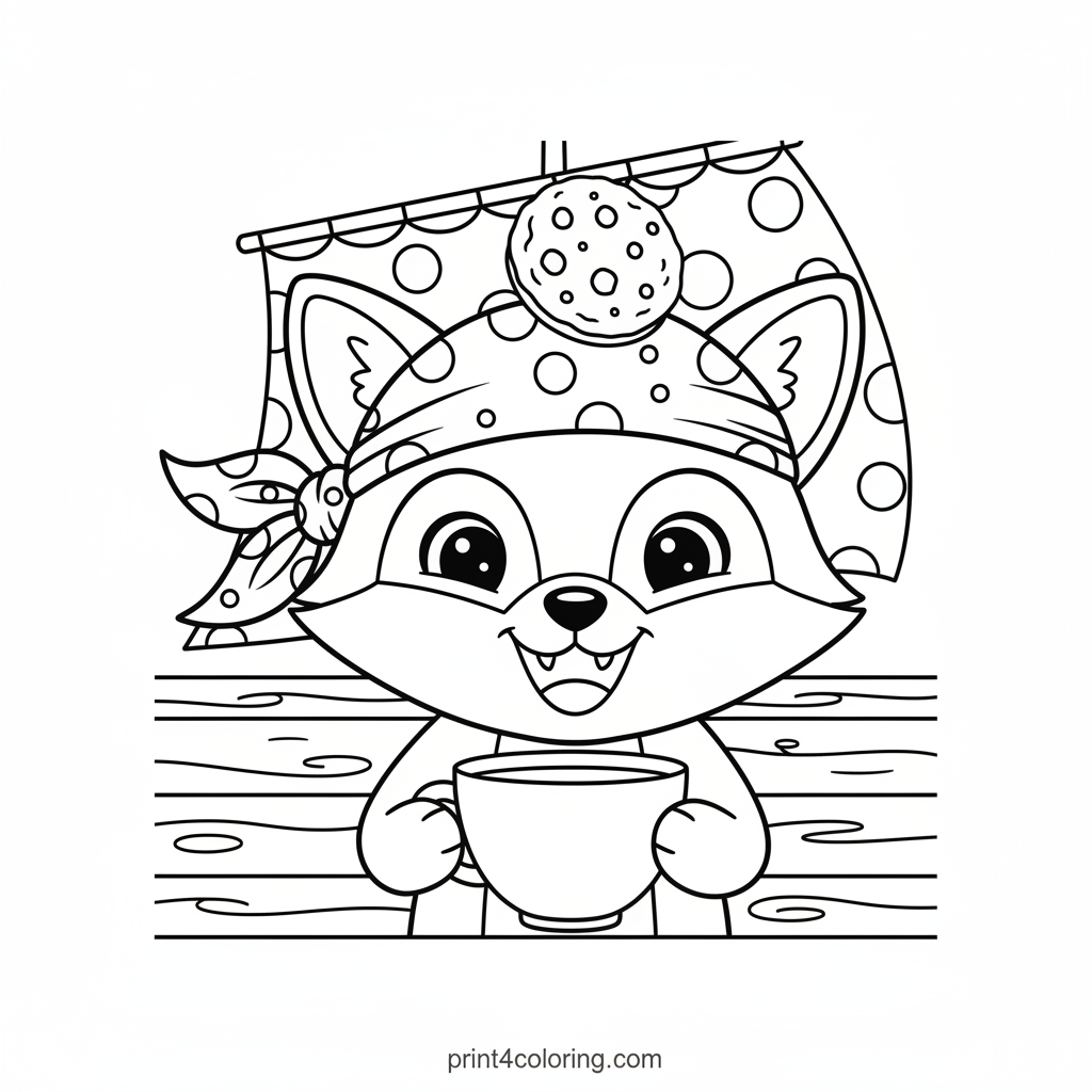 Ahoy there! Join a giggling fox, cheerful rabbit, and playful squirrel for a super silly tea party on a wobbly pirate ship! With mismatched polka-dot sails and a gently bobbing deck, these animal pirates balance teacups and cookies. This imaginative scene is bursting with fun, ready for your brightest colors!