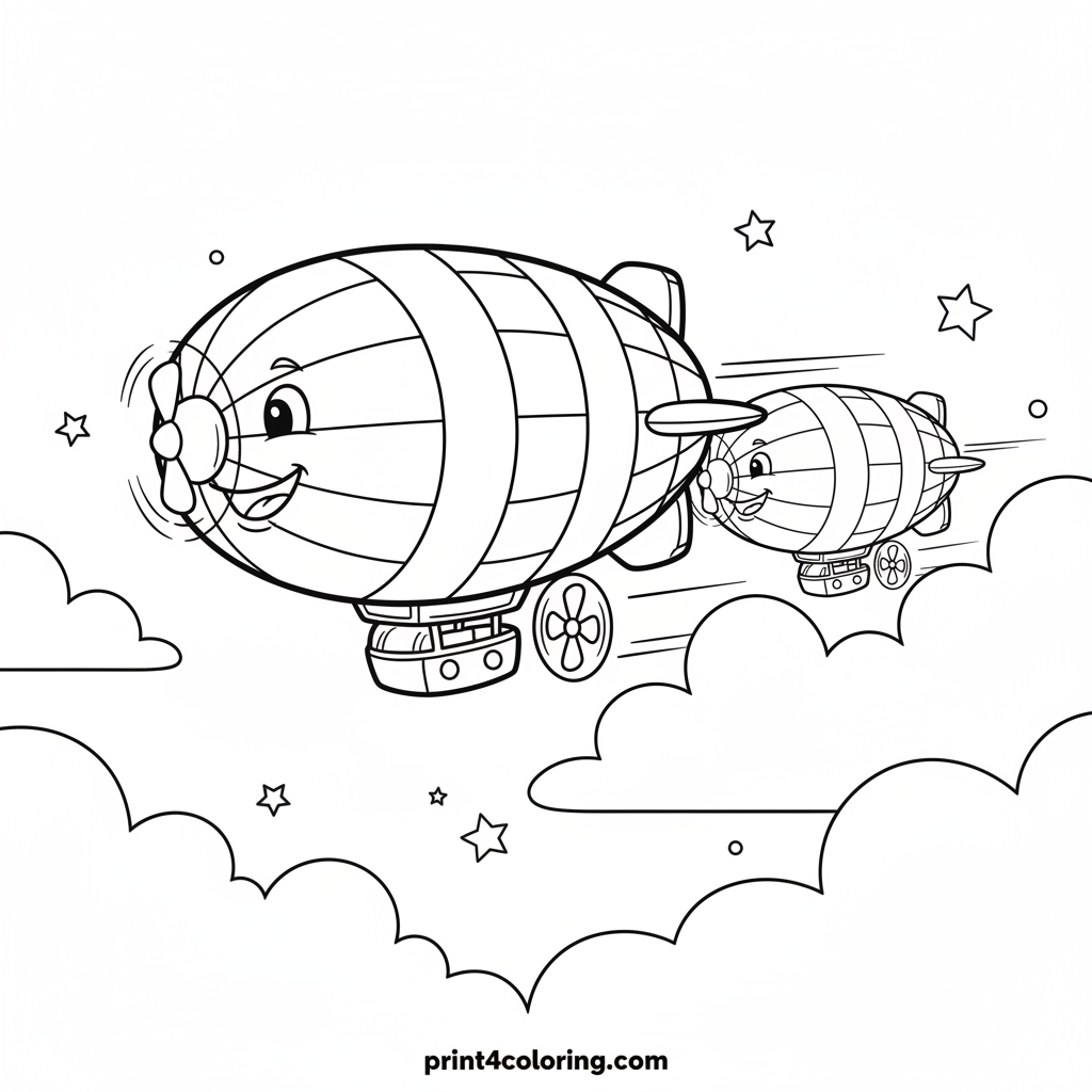#blimp#race#sky#clouds#airship#flying#vehicles#adventure#coloring-page#printable