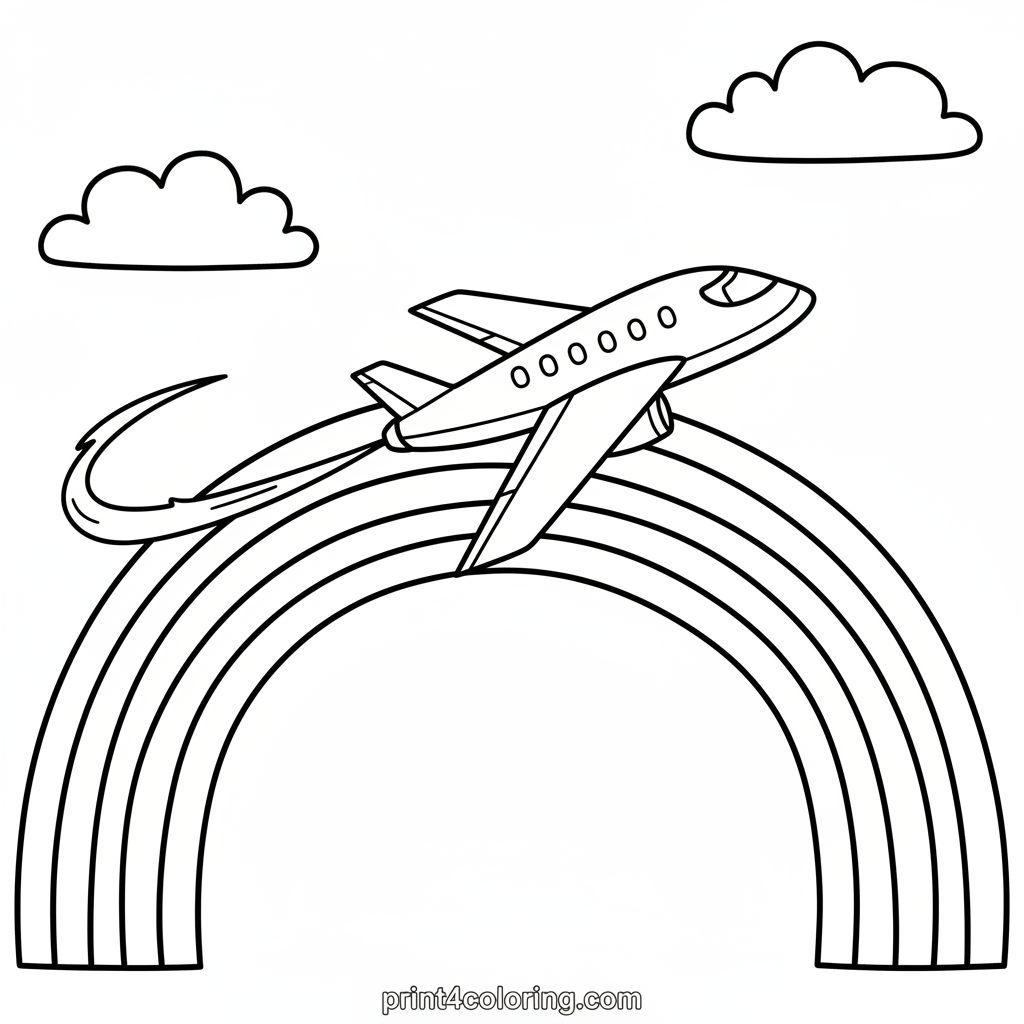 #airplane#rainbow#sky#flight#clouds#modern#jet#adventure#vehicles#coloring-page#printable