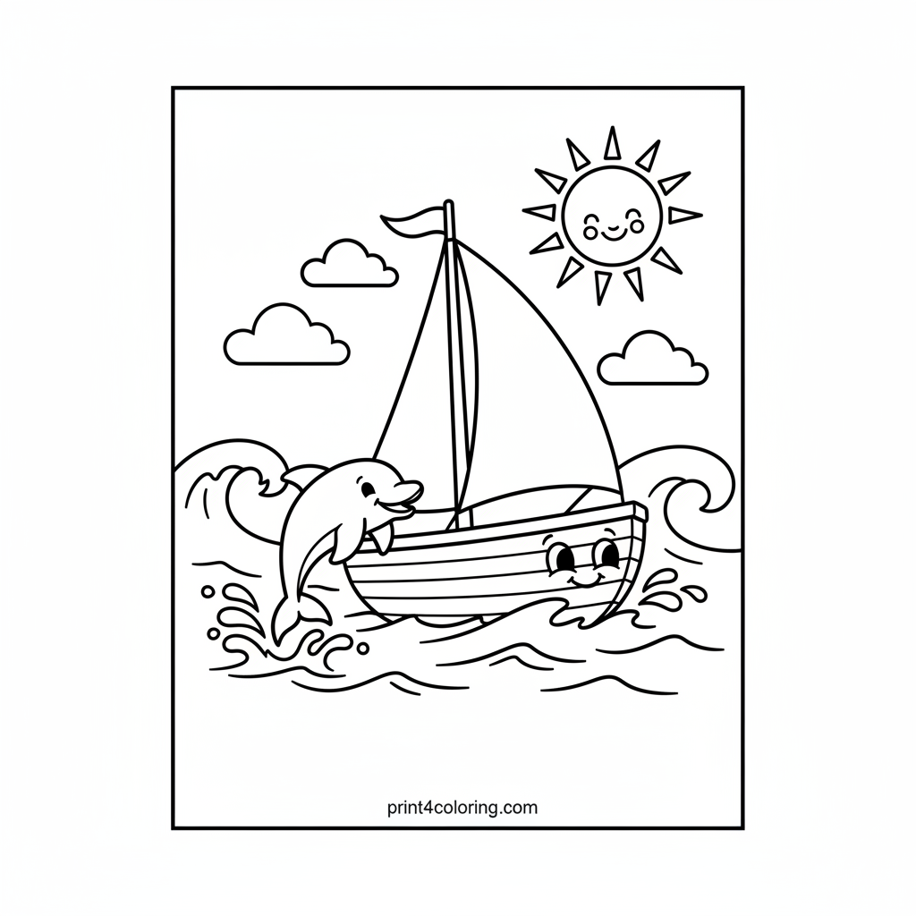 Speedy Sailboat & Leaping Dolphin Coloring Page