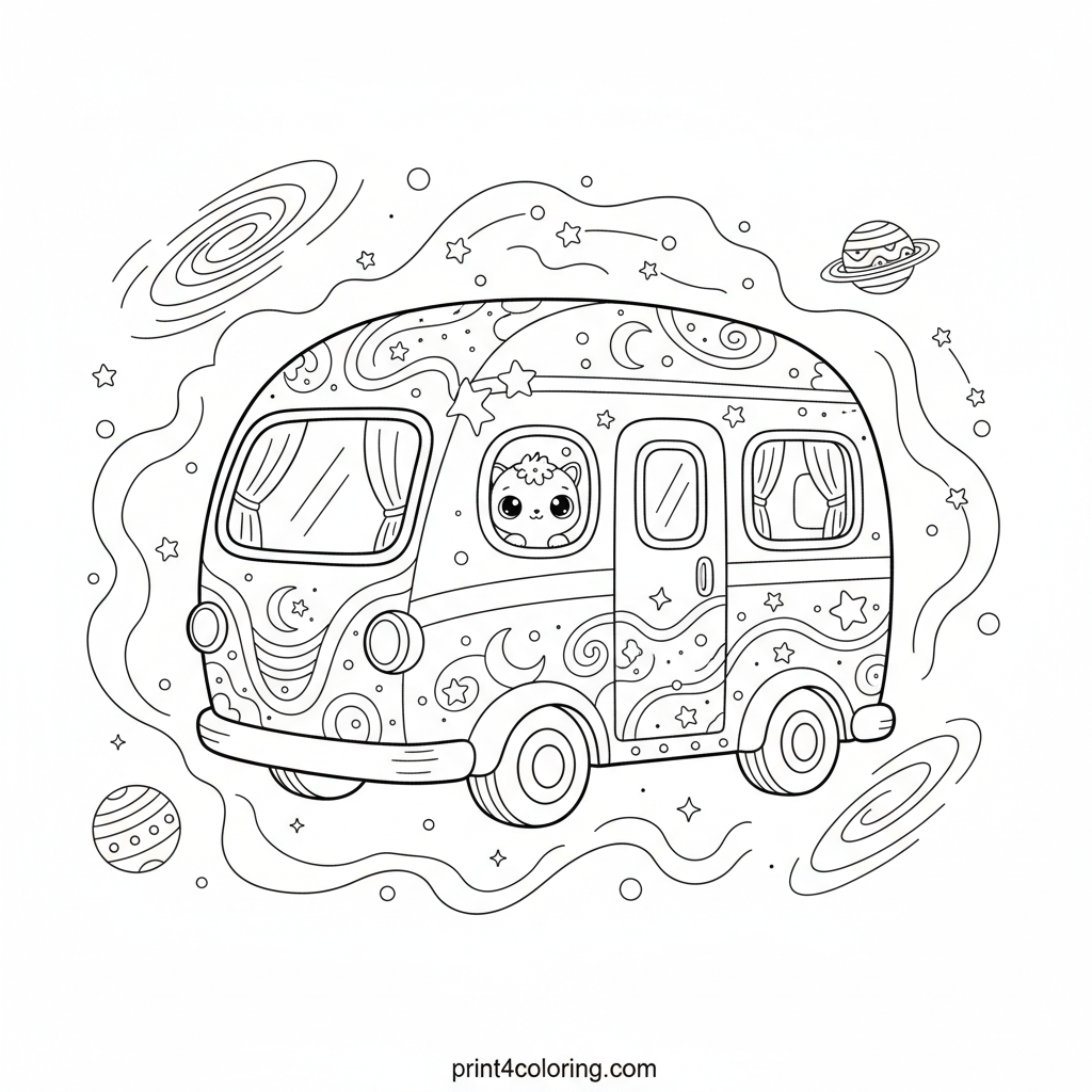 #space-travel#camper-van#galaxy#celestial#fantasy#coloring-page#printable