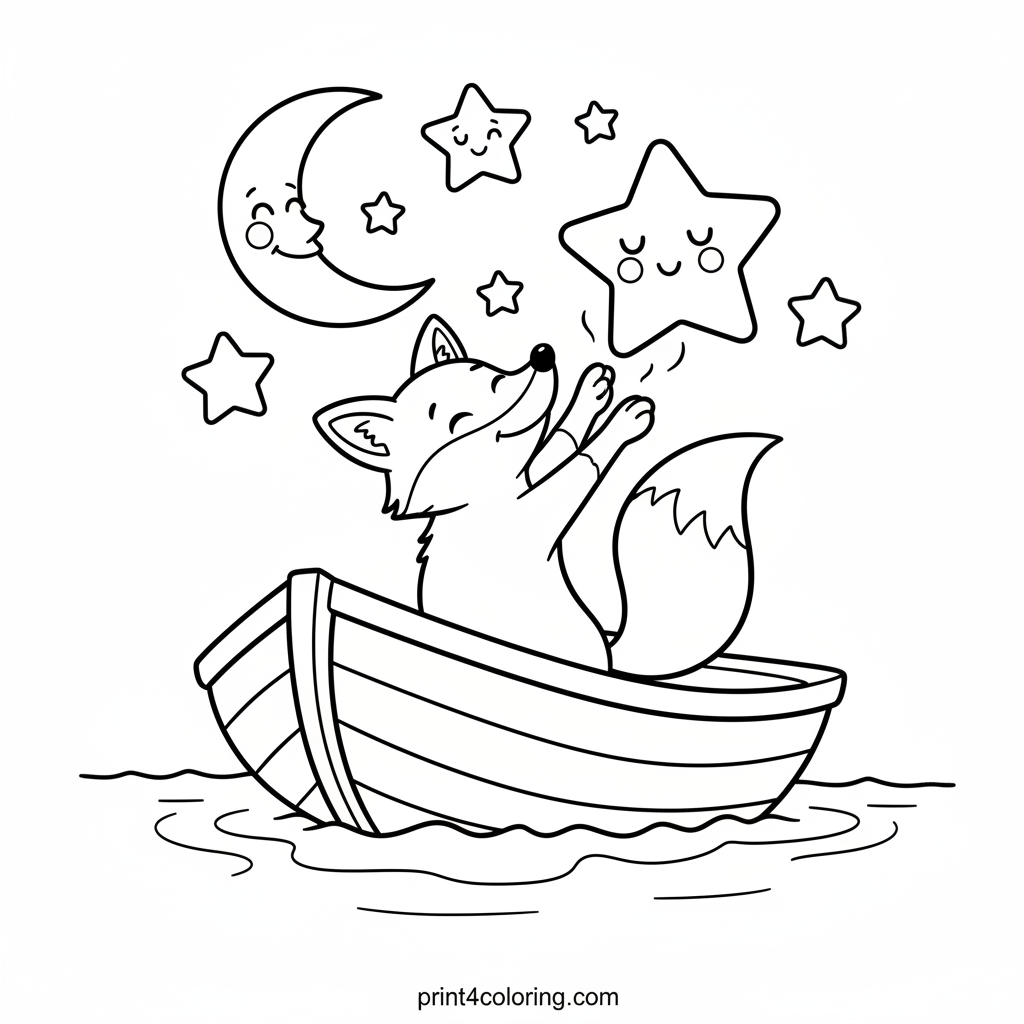 Starry Night Fox's Dream Rowboat Coloring Page
