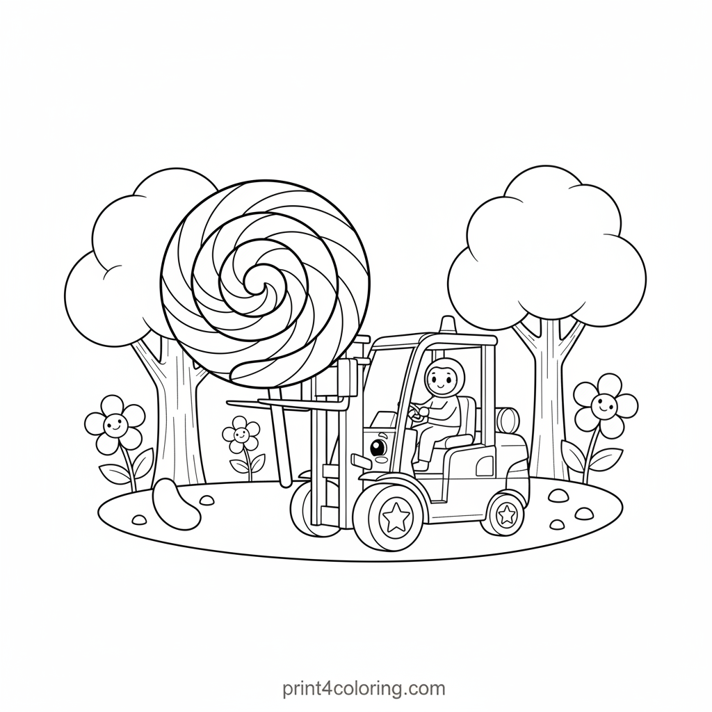 Sweet Lift: Candy Land Forklift Adventure Coloring Page