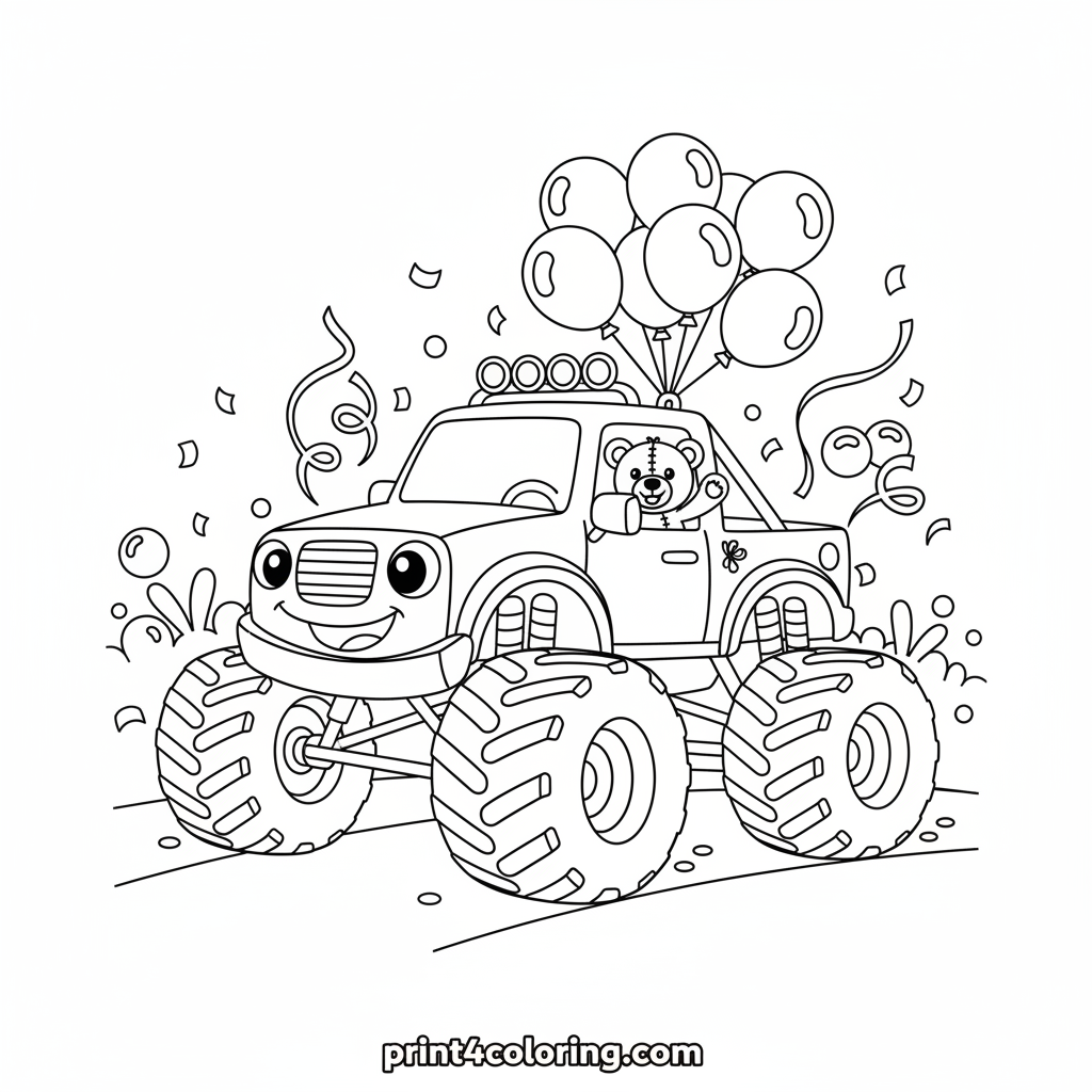 #monster-truck#parade#teddy-bear#balloons#streamers#vehicle#coloring-page#printable