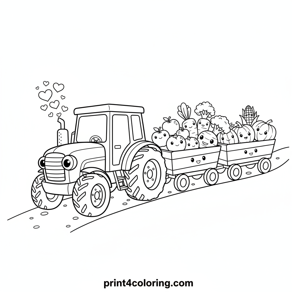 #tractor#farm#harvest#fruits#vegetables#wagon#coloring-page#printable