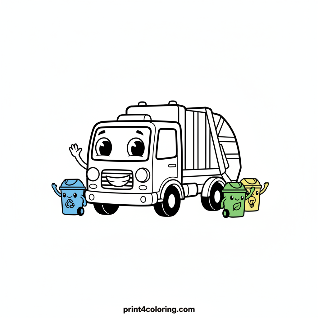 Meet our super cheerful recycling truck, ready to help keep our planet clean! With big, friendly eyes and a wide smile, this happy helper is surrounded by its enthusiastic little recycling bin friends, all waving hello. Grab your crayons and bring this eco-friendly team to life with bright, happy colors!
