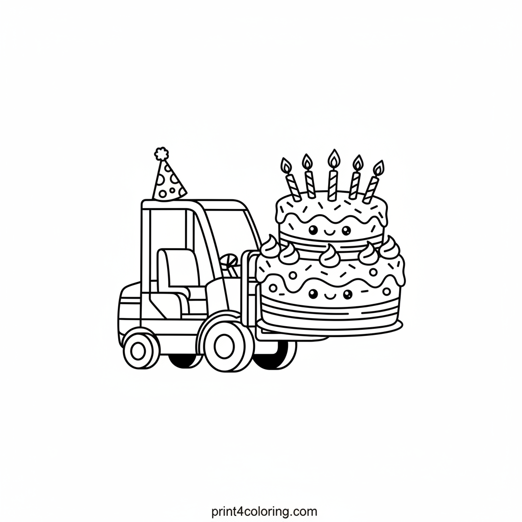 The Forklift's Wobbly Cake Delivery Coloring Page