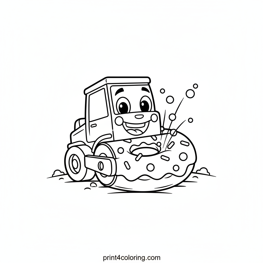 The Giggle-Rolling Doughnut Steamroller Coloring Page