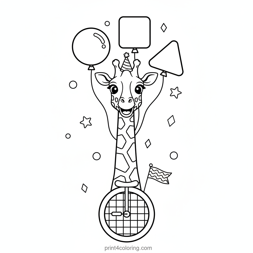 The Juggling Giraffe's Grand Unicycle Ride Coloring Page