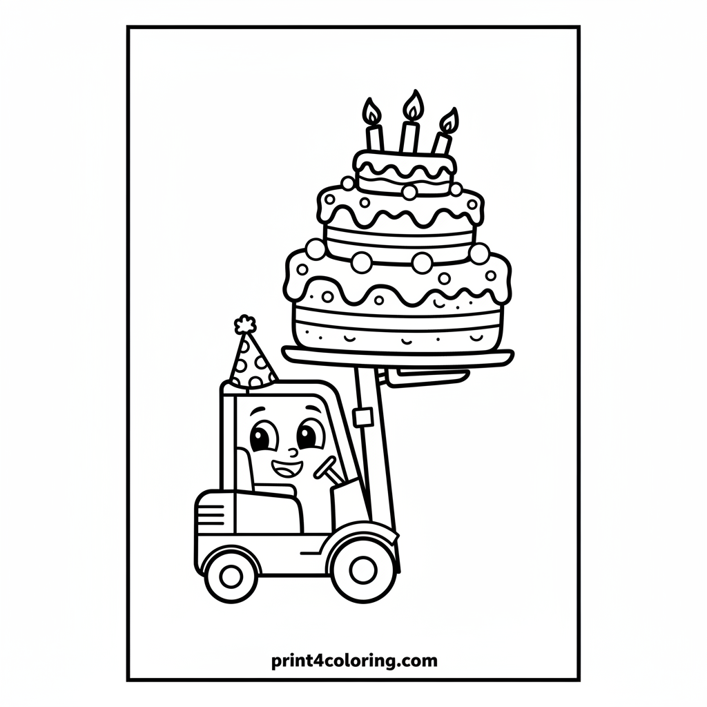 The Party Forklift's Wobbly Cake Delivery! Coloring Page