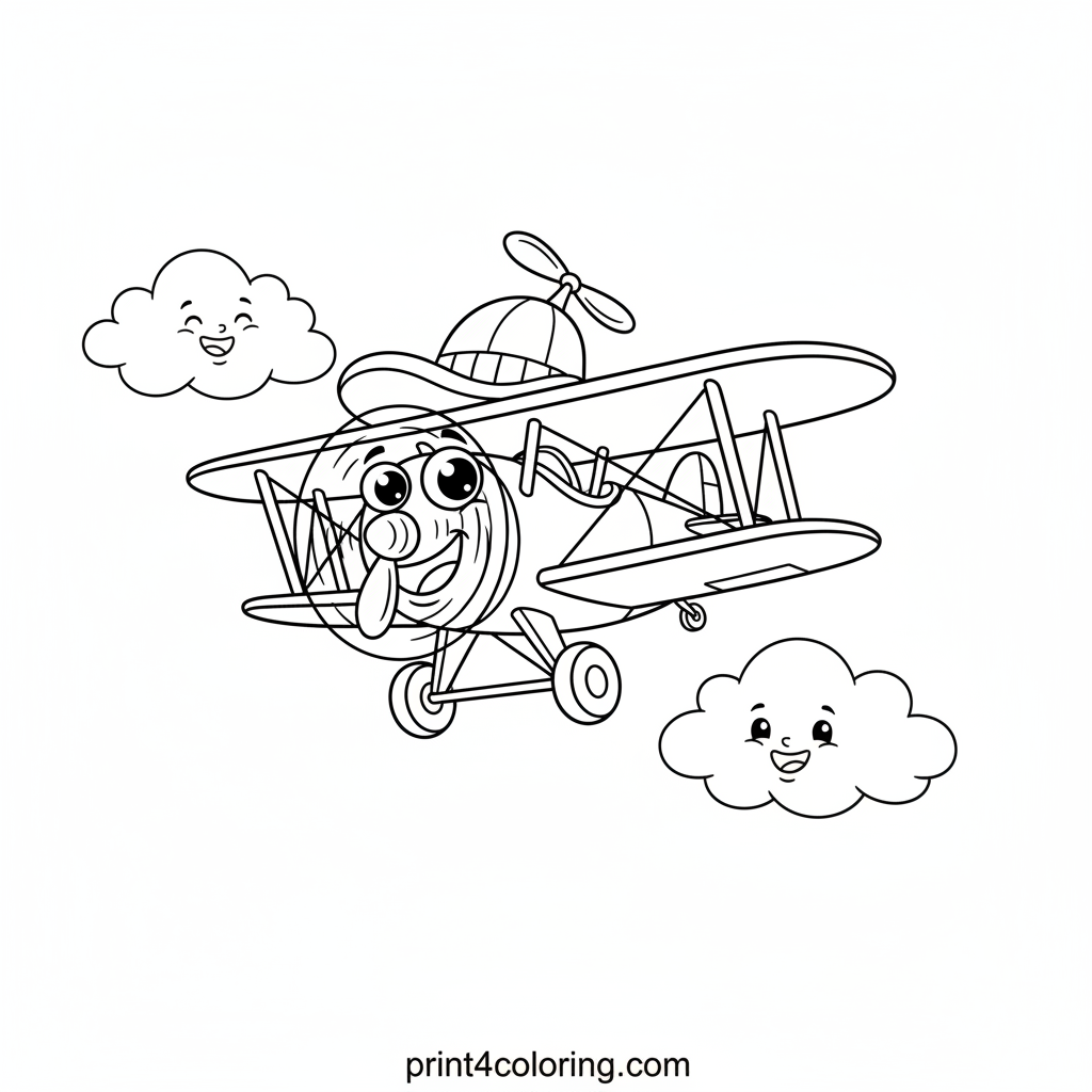 The Propeller-Hat Biplane's Giggling Adventure Coloring Page